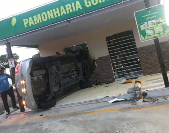 Um veículo invadiu a Pamonharia Goiânia na tarde desse domingo (05) por volta das 17h30. De acordo com informações de testemunhas, o veiculo de marca HB20 teria invadido o estabelecimento, pois a mulher teria dormido ao volante e perdeu o controle, assim subindo a calçada. O estabelecimento se encontra na...