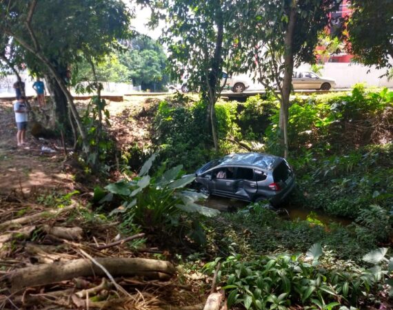 Veículo capota e cai em igarapé na Zona Sul de Manaus