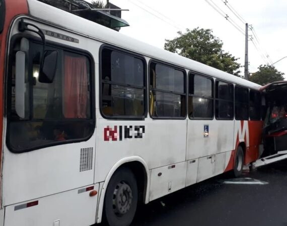 Acidente envolvendo dois ônibus deixa 12 pessoas feridas e uma das vítimas presa às ferragens
