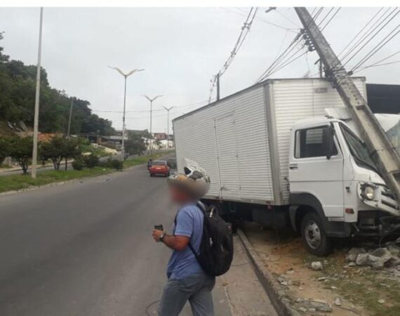 Caminhão desgovernado bate em poste na Nova Cidade