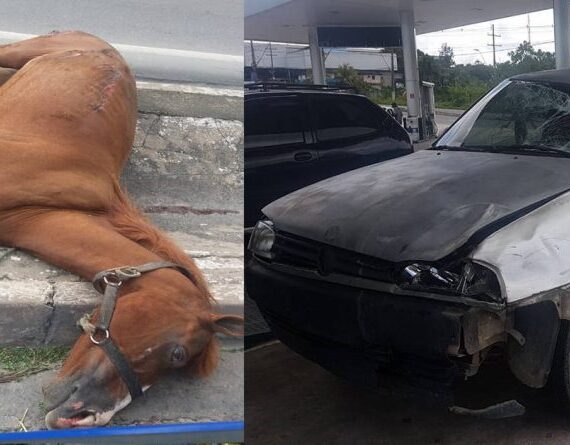 Motorista atropela e mata cavalo na avenida Torquato Tapajós em Manaus