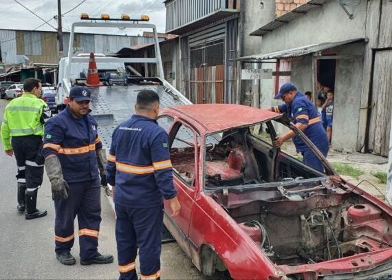 ‘Operação Sucata’ da Prefeitura de Manaus retira veículos abandonados na zona Norte