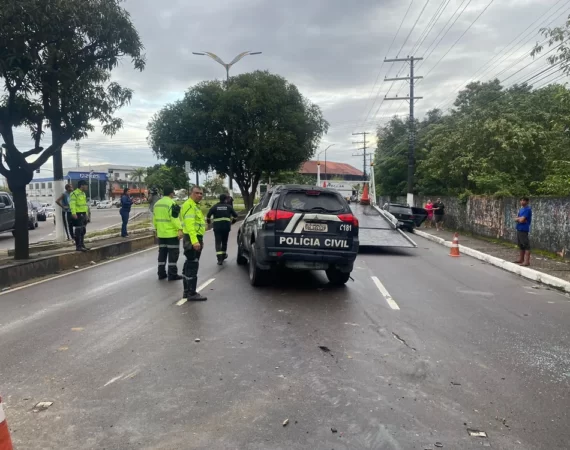 Investigador fica ferido após viatura capotar e atingir carro em Manaus