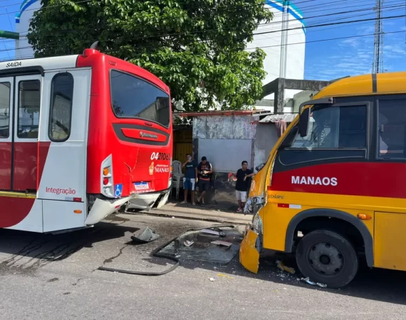 Micro-ônibus ‘amarelinho’ colide contra ônibus e passageiros ficam feridos em Manaus; motorista estava embriagado